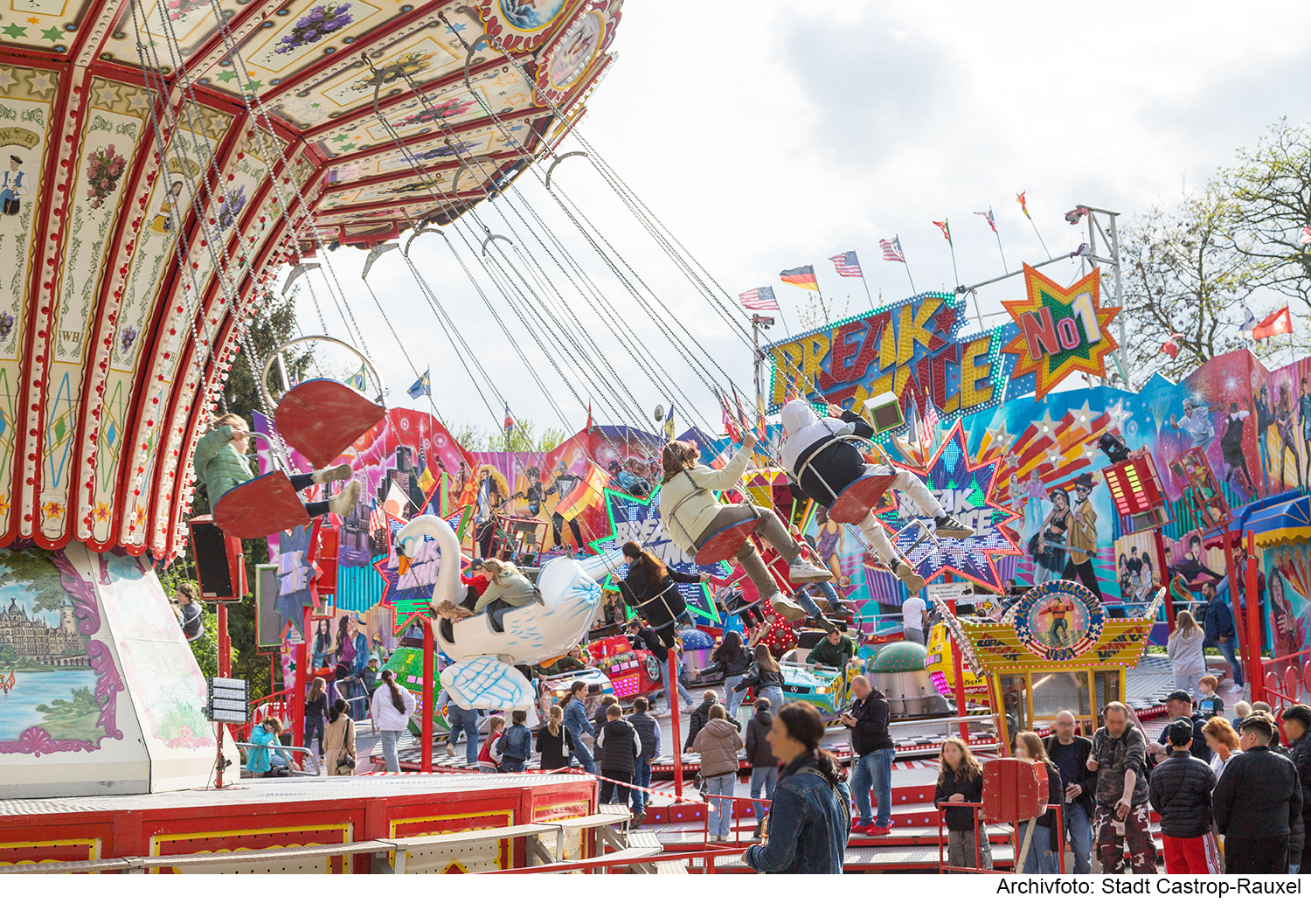 Die Castroper Frühjahrskirmes blickt auf eine 542-jährige Geschichte zurück und verwandelt vom 17. bis 20. April 2026 die Altstadt in eine bunte Festmeile. Mehr als 70 Attraktionen sorgen für emotionale Erlebnisse, Party-Stimmung und Spaß für Groß und Klein. Das 35 Meter hohe Riesenrad, eine große 90er Jahre Party und ein spektakuläres Höhenfeuerwerk sind nur einige der Highlights, die Besucher erwarten.