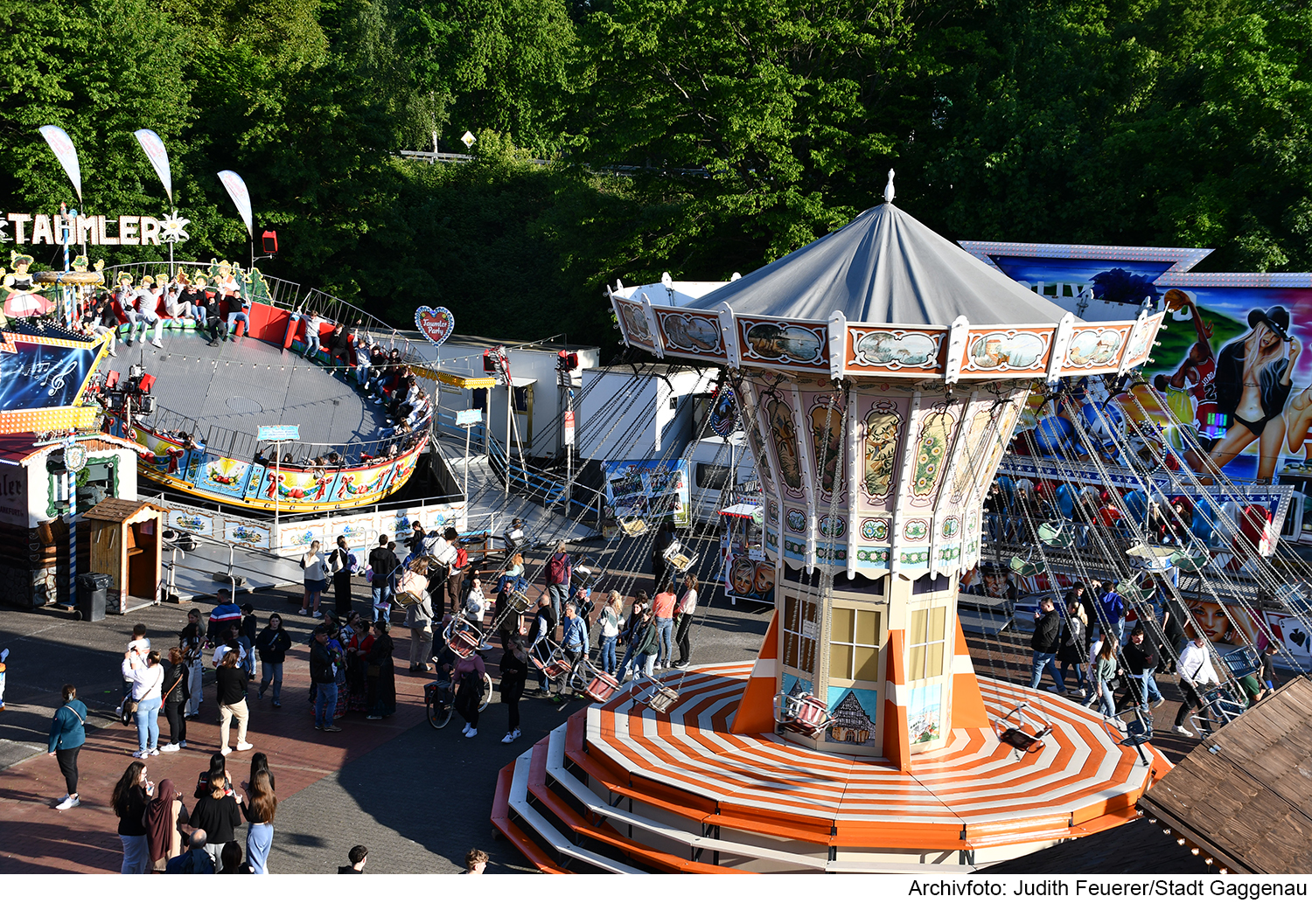 Gaggenauer Vereine und Gastronomen sorgen für ein abwechslungsreiches kulinarisches Angebot und begeistern mit einem musikalischen Rahmenprogramm. Klassiker wie Zuckerwatte, gebrannte Mandeln und bunte Riesenlutscher versüßen den Besuch, während das nostalgische Kettenkarussell für gemütliche Runden sorgt – ein Spaß für Kinder und Erwachsene, die den Nervenkitzel suchen.