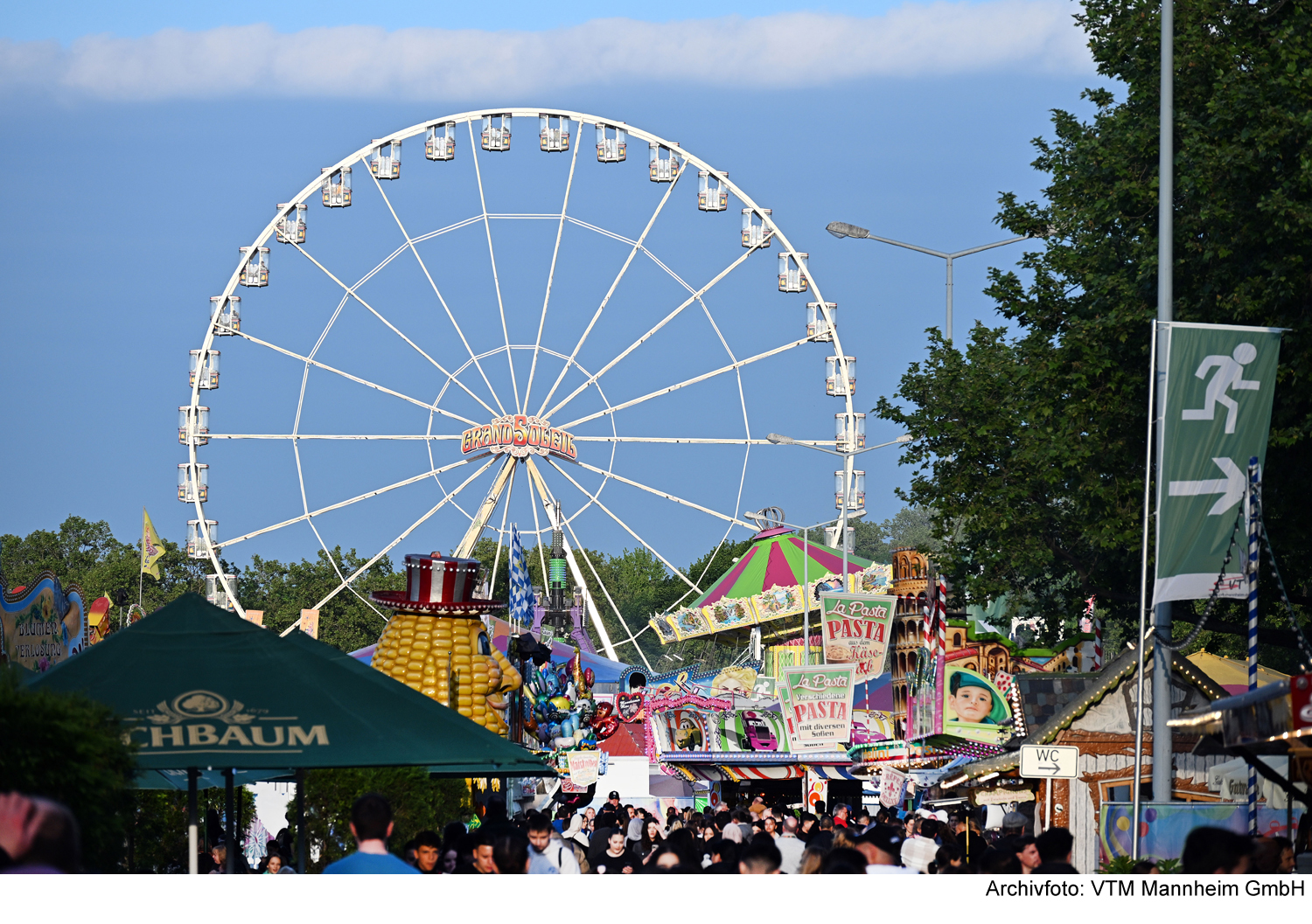 Die Mannheimer Oktobermess findet noch bis Sonntag, den 12. Oktober 2025, auf dem Neuen Messplatz in Mannheim statt und zieht zahlreiche Besucherinnen und Besucher an. Während der 16 Veranstaltungstage können Gäste vielfältige Angebote wahrnehmen, das Unterhaltungsprogramm genießen und beispielsweise mit dem Riesenrad fahren. Neu im Programm ist die XXL-Schaukel „Excalibur“, die mit einer Höhe von 47 Metern beeindruckt.