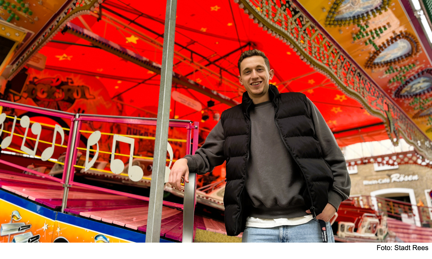 Vor einigen Monaten hat Christopher Hakvoort sein duales Studium „Kommunaler Verwaltungsdienst – Allgemeine Verwaltung“ bei der Stadtverwaltung Rees erfolgreich abgeschlossen. Im Anschluss wurde er in ein Beschäftigungsverhältnis übernommen und ist nun im Fachbereich 3 – Öffentliche Ordnung tätig. Dort ist die Organisation der Kirmes zentral angesiedelt. Nachdem eine Kollegin, die bisher für die Planungen zuständig war, die Abteilung gewechselt hat, wurde diese Aufgabe vakant.
